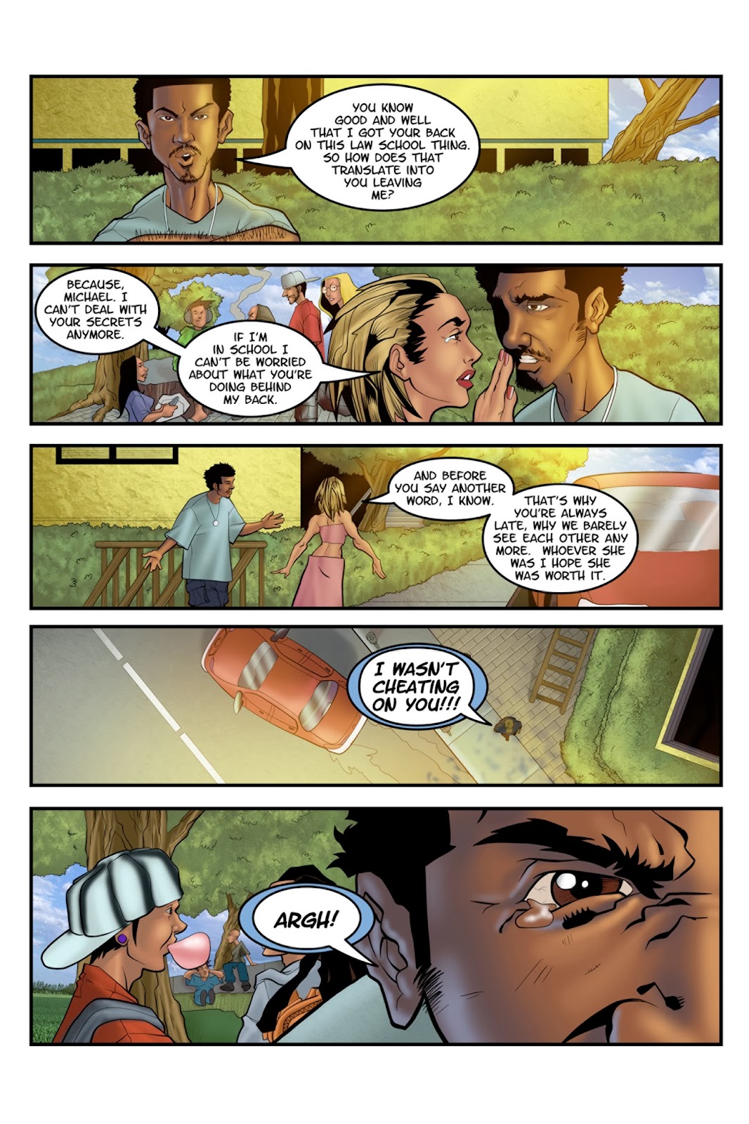 The argument gets heated as Carla reveals that she knows Mike has been cheating on her. Well any woman would have the right to feel that way. Mike can't say a thing because he knows when he is out all night getting cracked ribs stopping robberies or just saving the lives and city on a weekly basis he would love to be home with Carla. He not cheating, he's a friggin' Super hero. I have not seen a lot of komics take it from this perspective which is why Victor and I wanted to push this. We want to show the real world is just as crucial as the heroics. No female is going to think her boyfriend is being honest about another woman when he stands her up and is full of excuses. We take a closer look at this with Hotshot issue #0. So stay tuned